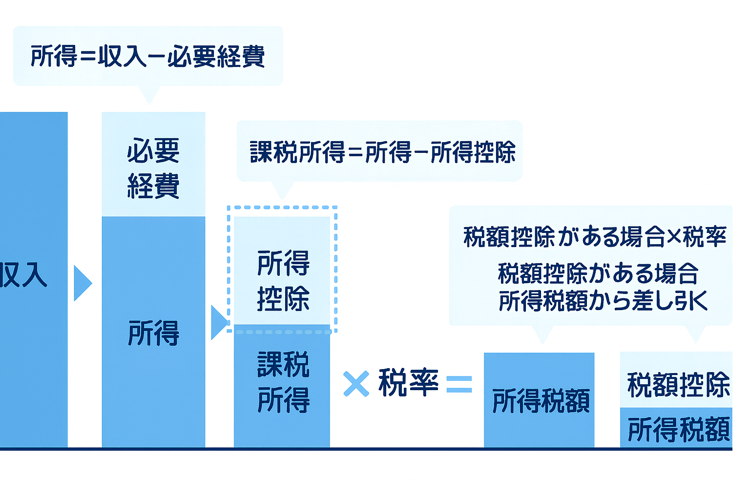 合計所得金額ー控除(基礎控除など)=課税所得