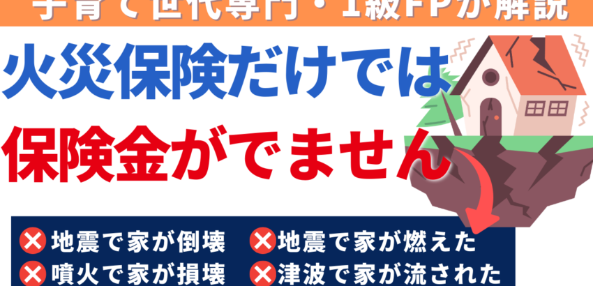 「地震で家が燃えた場合、火災保険で補償されるのでしょうか?」 正解は、火災保険では補償されません。地震保険で補償されます。 今回は、「地震保険」について詳しく解説していきます。地震を補償対象にするかどうかにより、保険料も … 続きを読む 【1級FPが解説】地震保険は必要か?地震保険の補償内容とポイントをわかりやすく解説