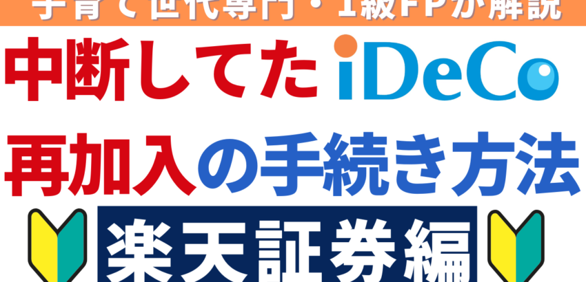 【1級FPが解説】中断してたiDeCo(イデコ・個人型確定拠出年金)の「再加入」手続き方法|楽天証券で具体的に解説