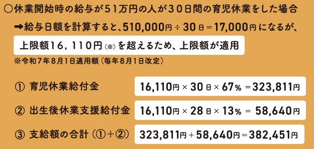 たとえば、休業開始時の給与が51万円の人の場合、次のようになります。