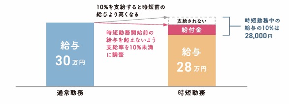 「時短後の賃金の原則10%」が給付金として支給されます。