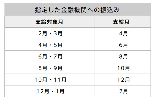 偶数月に2か月分ずつ支給