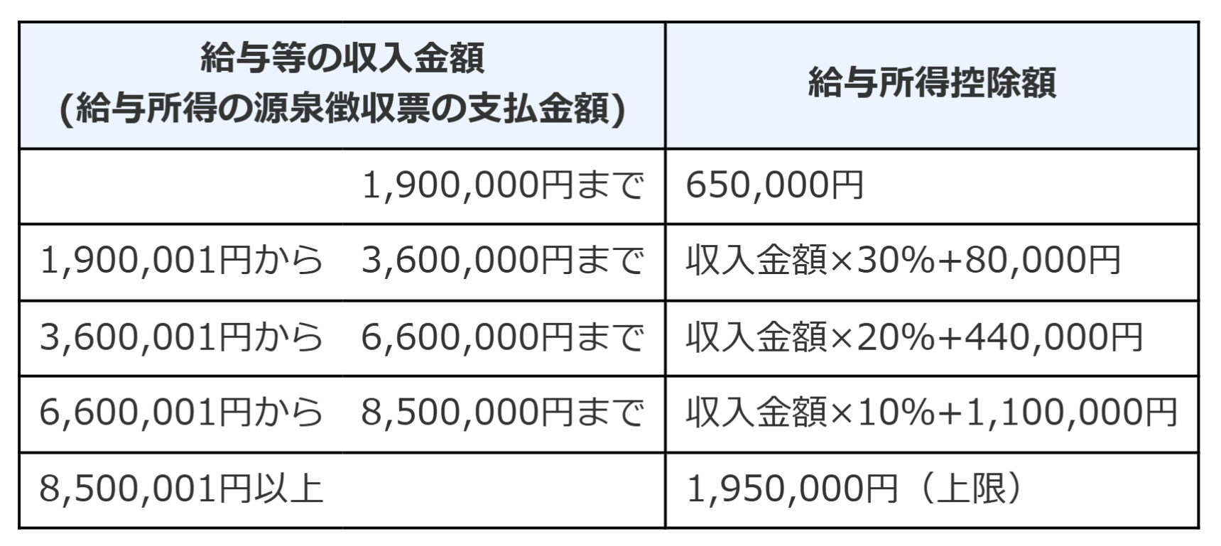 納税者本人の給与収入が1195万円の場合、給与所得控除額は195万円なので、所得は1000万円(1195万円-195万円)となります。そのため、納税者本人の年間の合計所得金額が1000万円以下は、給与収入のみの場合1195万円以下ということになります。