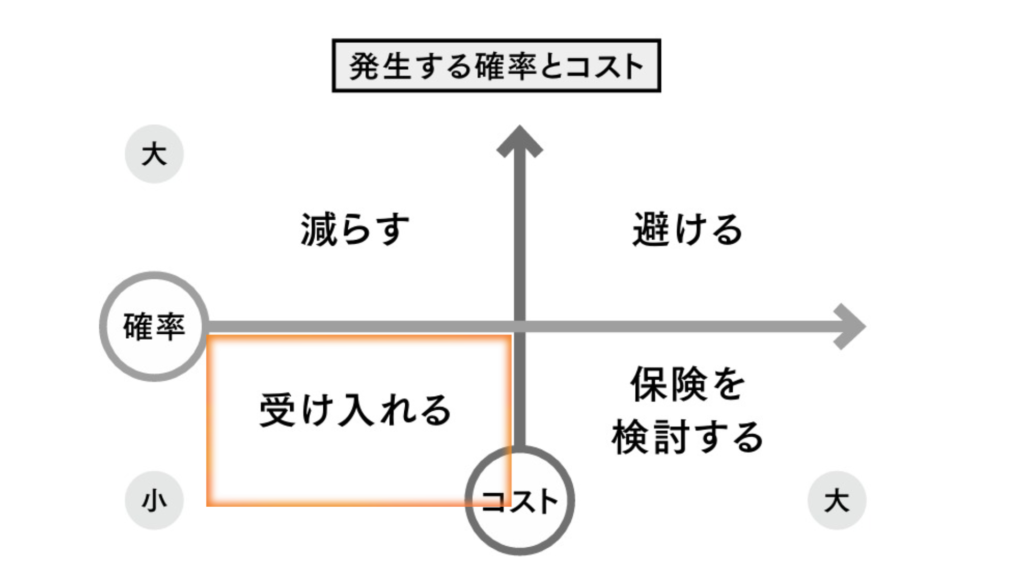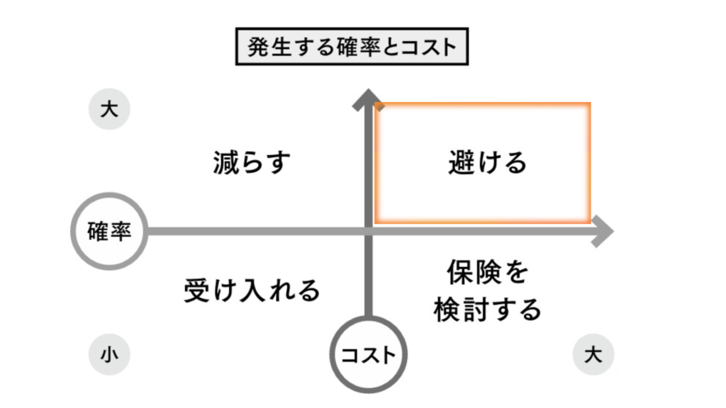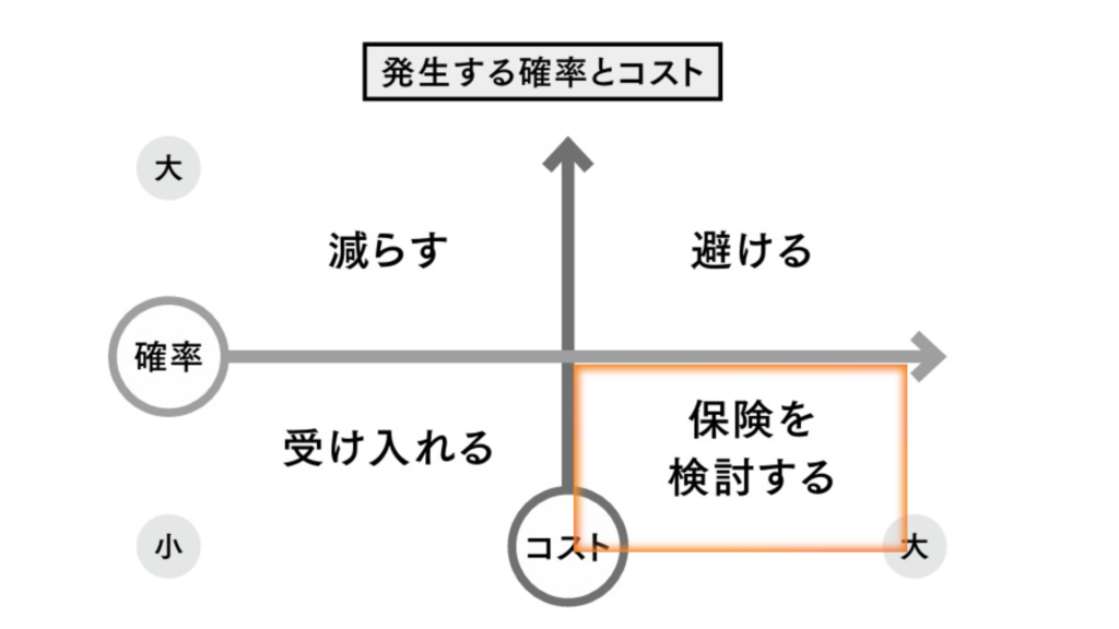 保険は、確率が低く、起こったとき大きなコストがかかるリスクに使うことが有効です。